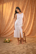 SLEEVELESS WHITE MIDI DRESS WITH EMBROIDERED POCKET