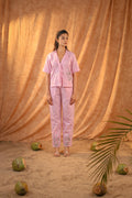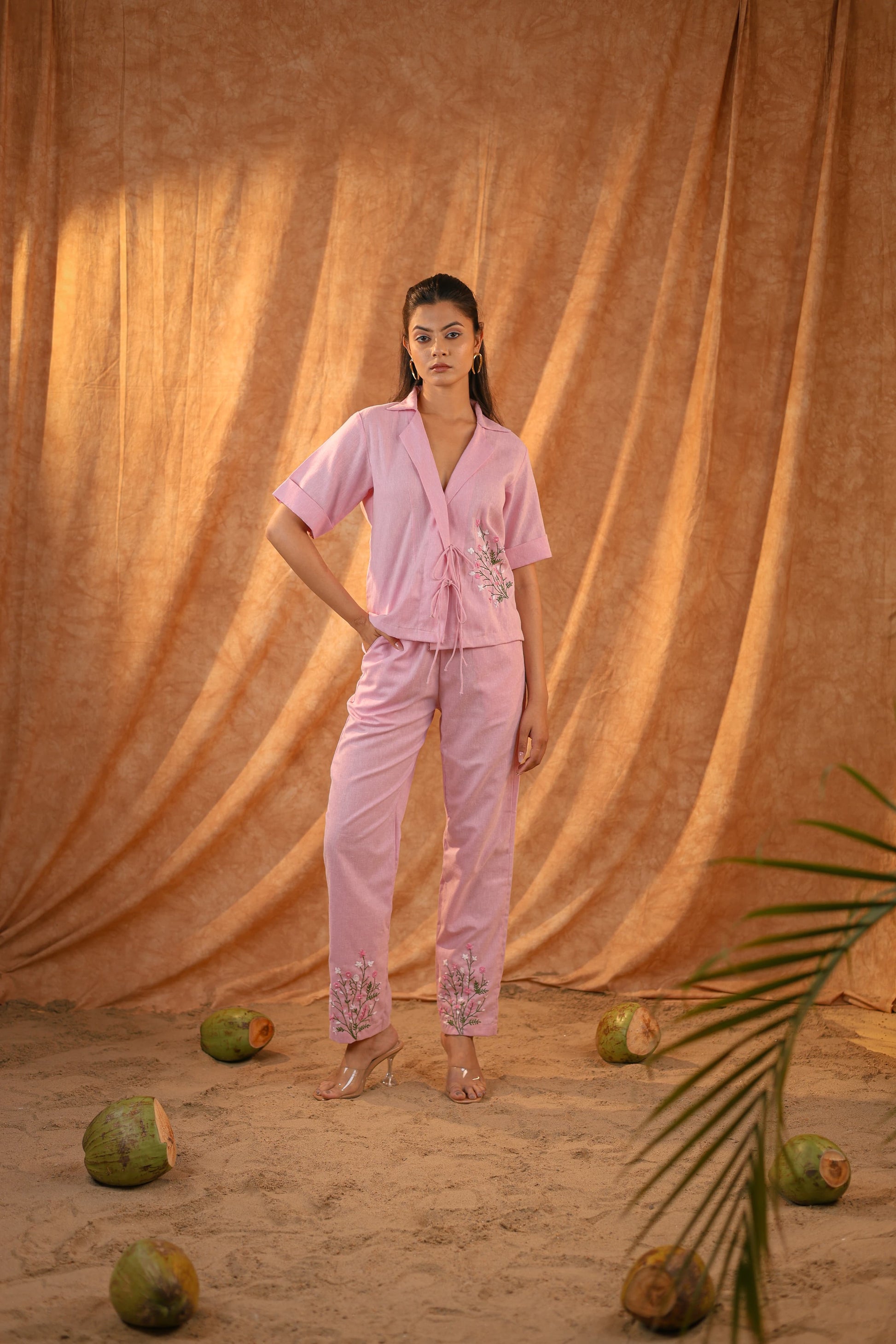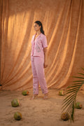 Made from ultra-soft, breathable linen, the Pretty in Pink Co-ord Set brings effortless charm and all-day comfort. The dreamy pale pink hue adds a feminine, fresh feel to your wardrobe, while the relaxed-fit shirt top with concealed placket and classic collar keeps it polished yet easygoing. Paired with matching straight-cut pants, this set is your perfect companion for sunny strolls, brunch dates, or laid-back lounging.